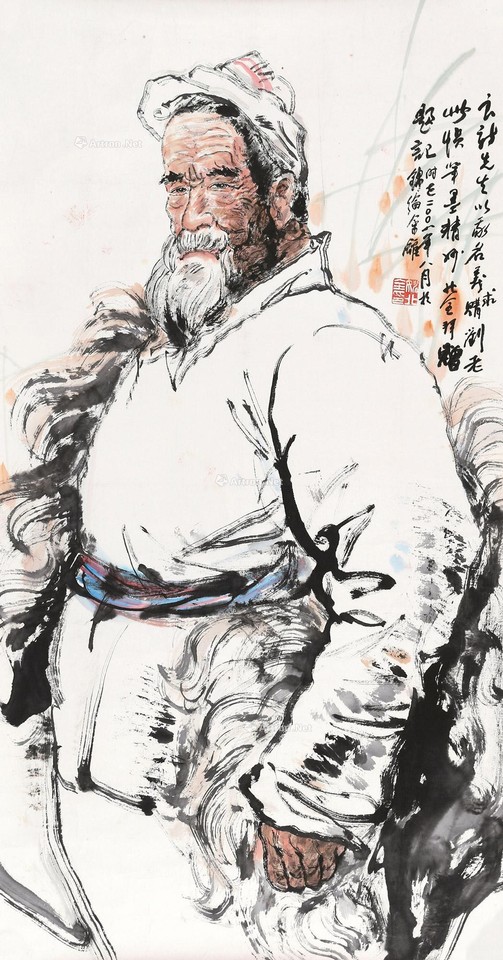 刘文西,1933年,浙江嵊县人,任西安美院国画系主任,副院长,教授。中国美术家协会常务理事,陕西国画院名誉院长,中国画研究院院委,延安市副市长,全国人大代表。擅人物画。