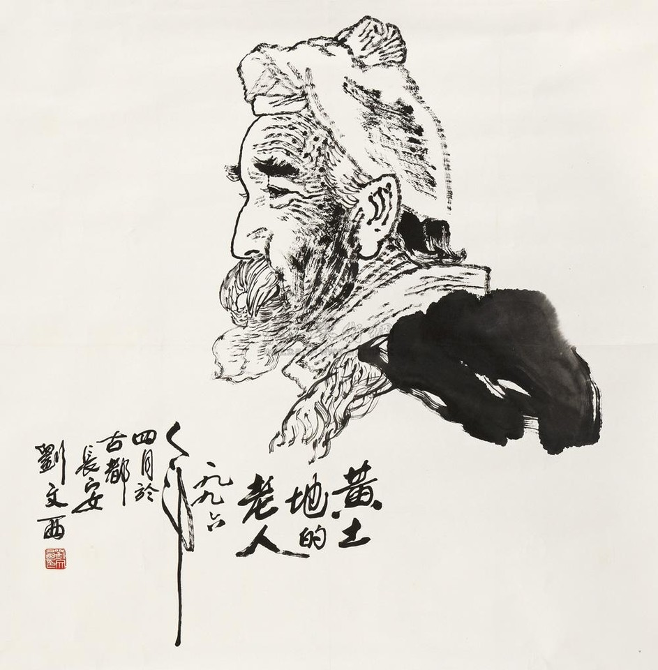刘文西 黄土地的老人 镜心